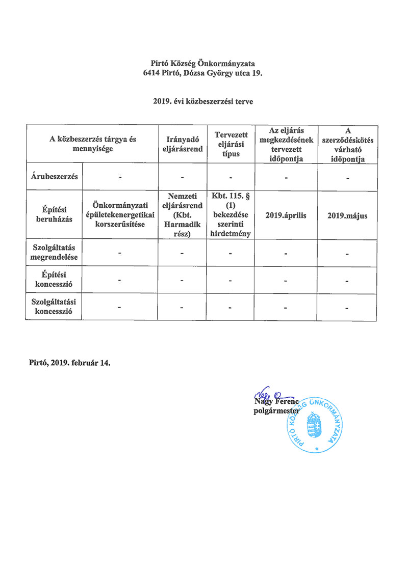 - 2019. közbeszerzési terv